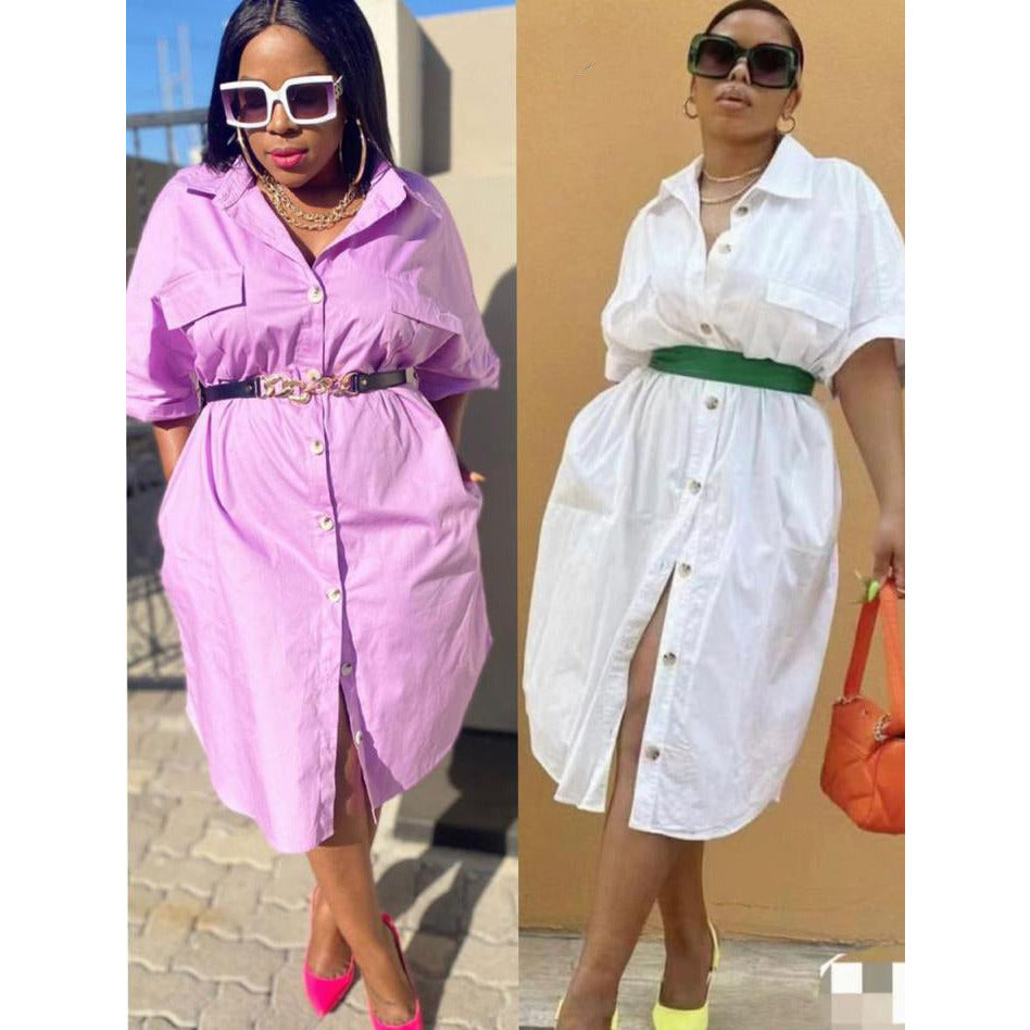 Sexy Short Sleeve Collar Shirt Dress. This versatile piece is perfect for work or play, featuring a comfortable cotton blend and figure-hugging silhouette. It's the perfect combination of style and comfort, making it an essential part of any wardrobe.