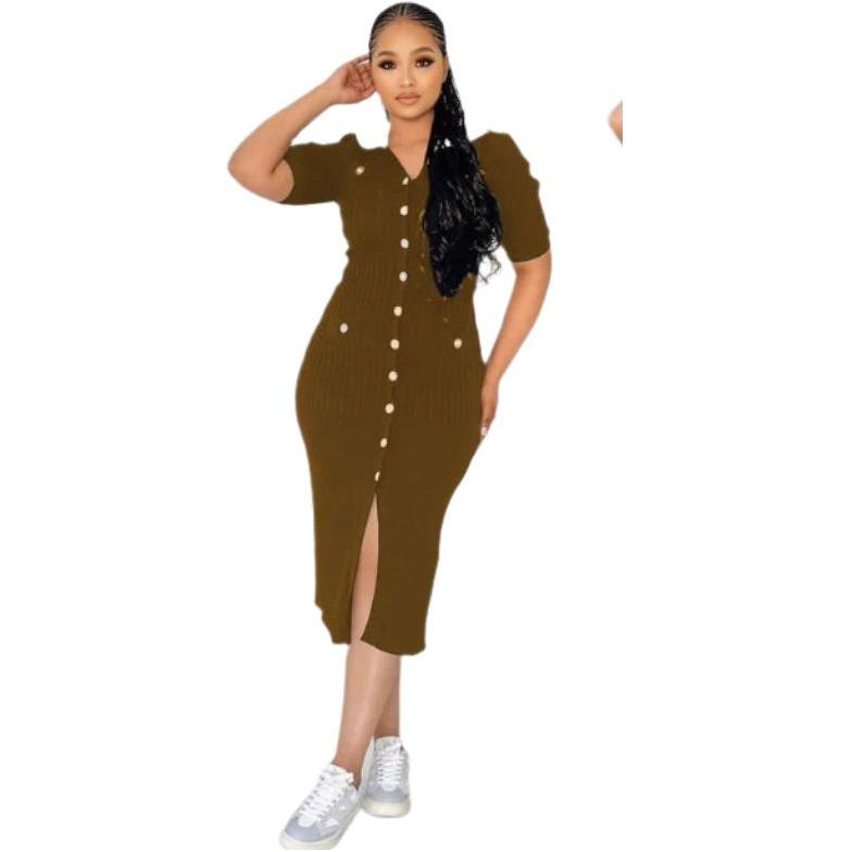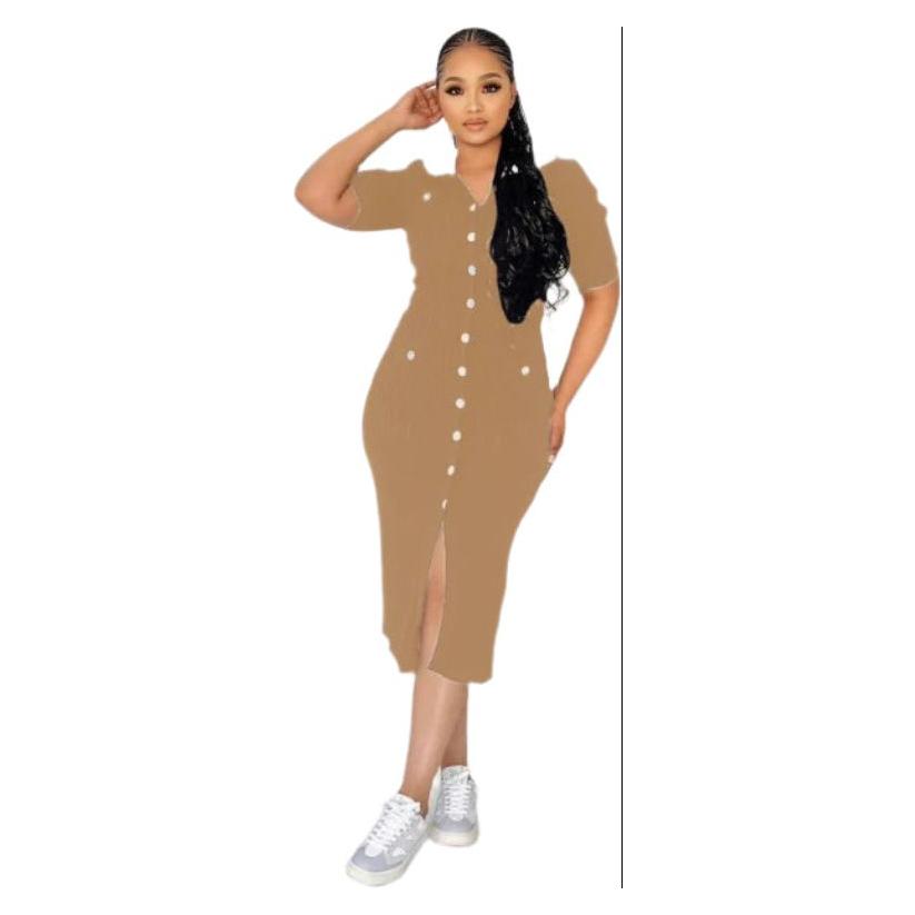 Button Up High Waisted Preppy Midi Dress
