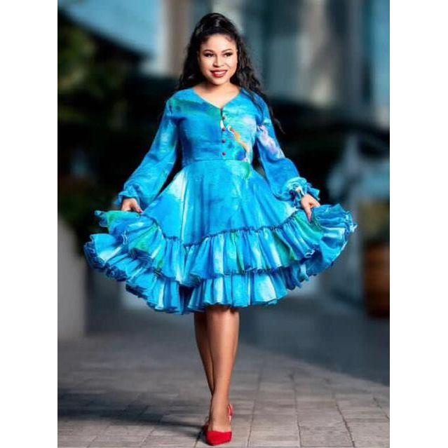 Look modern and stylish with this Buttoned V-Neck Dress. Crafted with quality fabric, featuring a V-neck and ruffled bottom, this dress is sure to make a fashionable statement.