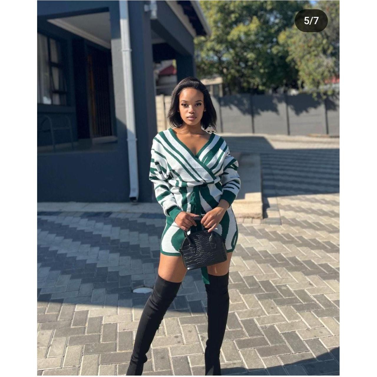 This Striped V-Neck Mini Dress is the perfect fashion statement. It exudes modern style with its fashionable and stylish design, featuring a mini length for a playful yet sophisticated look.
