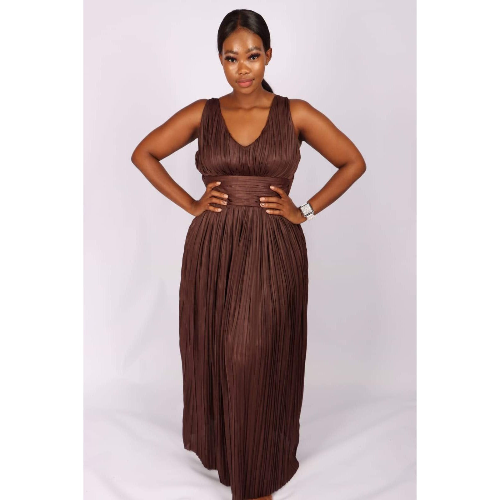 Deep V-Neck Pleated Maxi dress The comfortable, breathable material is perfect for days spent indoors or outdoors. This maxi dress will keep you comfortable and stylish, no matter what the day holds. Its breathable fabric ensures a relaxed, airy fit that'll keep you looking and feeling your best.