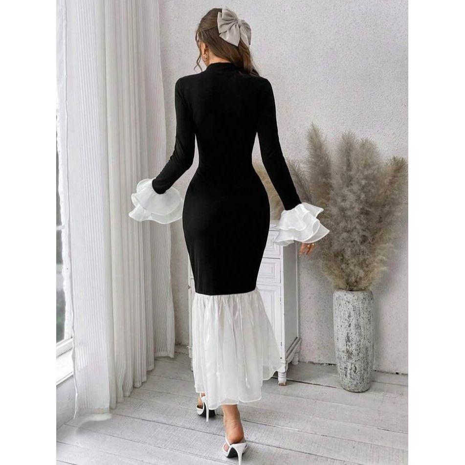 This dress boasts a unique and stylish design that will surely make heads turn. Crafted with high-quality pleated fabric and featuring a trendy asymmetric French shoulder, it's a perfect choice for any formal or semi-formal event. Elevate your look with this elegant and versatile maxi dress.
