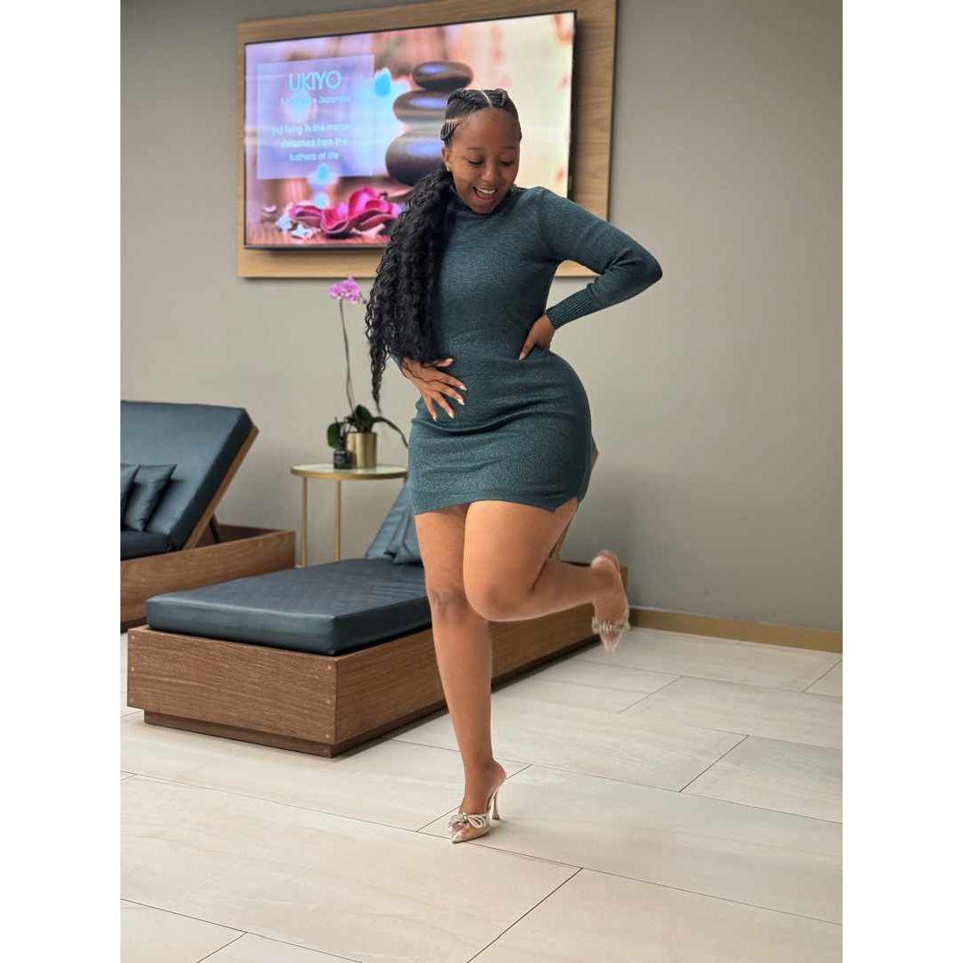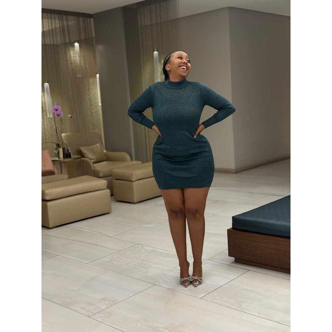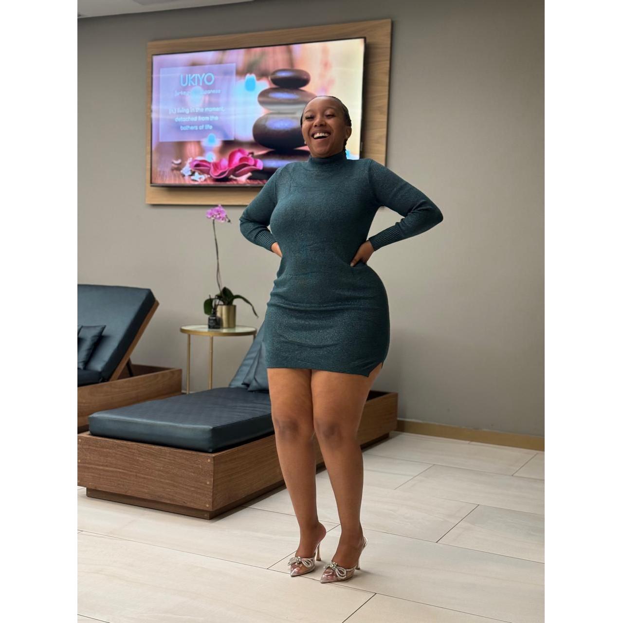 This high-quality glitter turtleneck mini dress is the perfect addition to any modern and elegant wardrobe. Its stylish and fashionable design is sure to make a statement at any event. Experience the perfect blend of quality and style with this must-have dress.