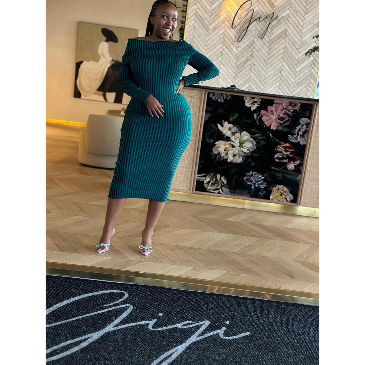 This knitted off shoulder dress offers high-quality craftsmanship and a stylish, elegant design. The knitted fabric adds a touch of sophistication while the off shoulder style adds a modern twist. Perfect for any occasion, this dress is both comfortable and fashionable.