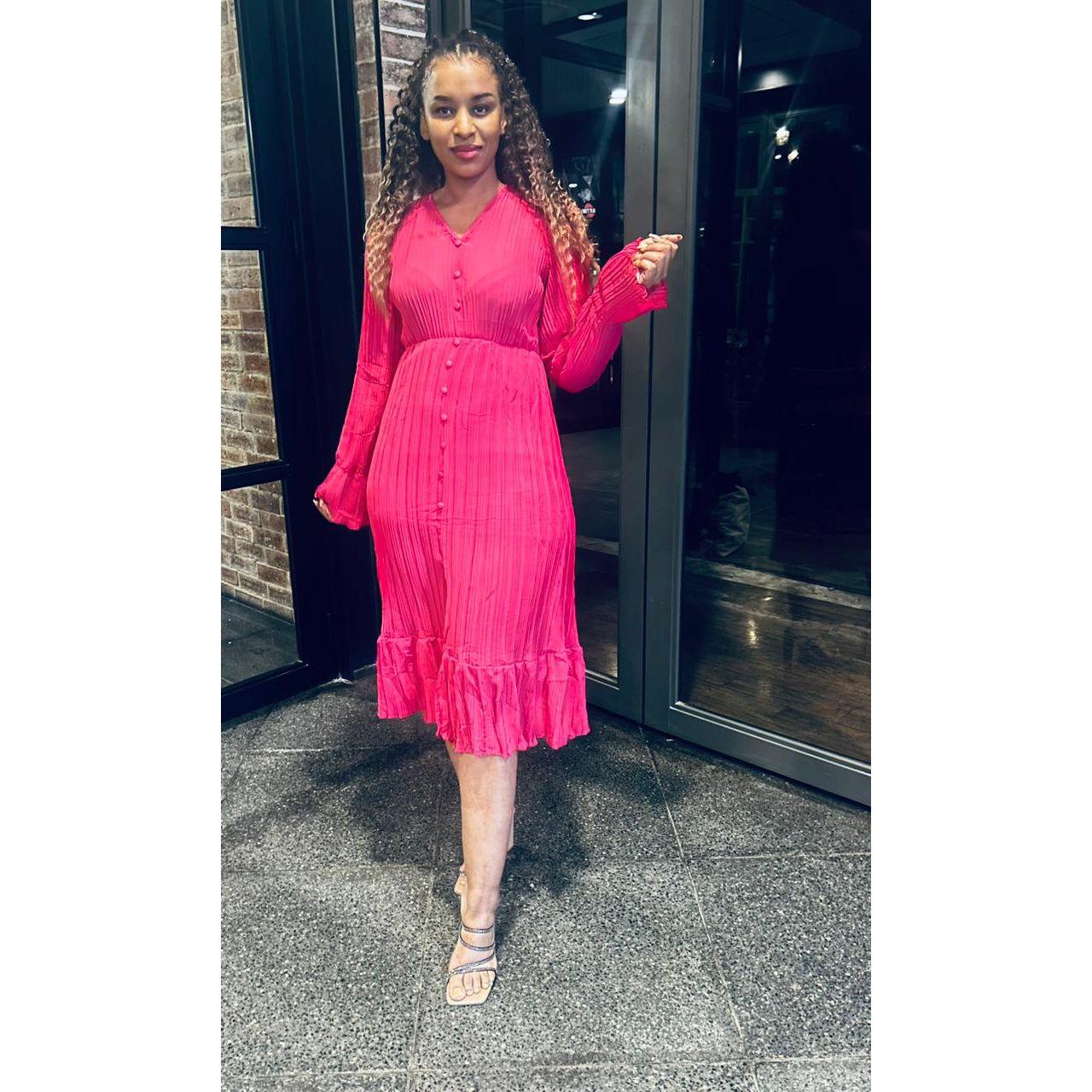 This Long Sleeve V-Neck Dress is the perfect combination of modern styling and classic elegance. Its timeless design features a sleek silhouette and long sleeves that make it an unmistakably luxurious and sophisticated choice. For a look of timeless beauty, put on this dress and make a lasting impression.