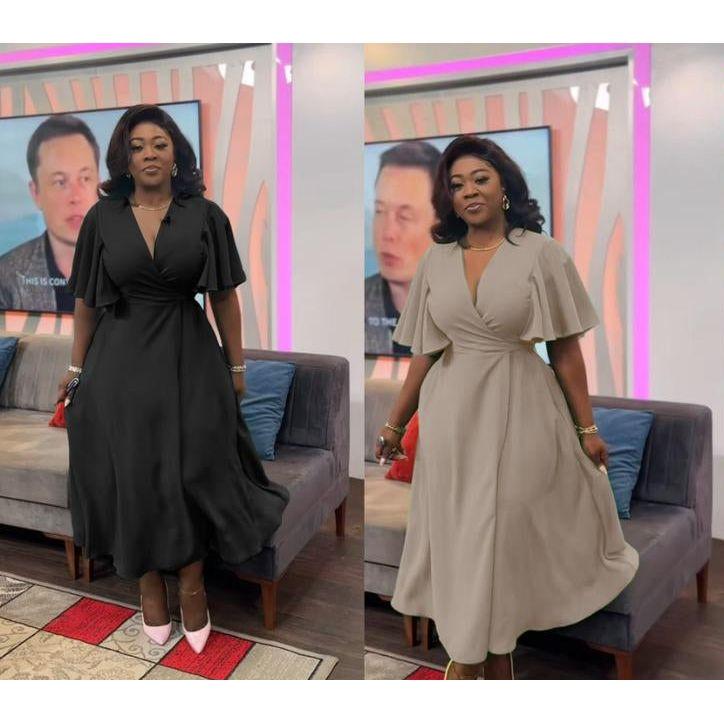 Made from high-quality fabric and designed with an elegant V-neck and short sleeves, this dress is perfect for any occasion. With its versatile style and comfortable fit, this dress is a valuable addition to any wardrobe. Made with expertise and precision, this dress is guaranteed to impress.