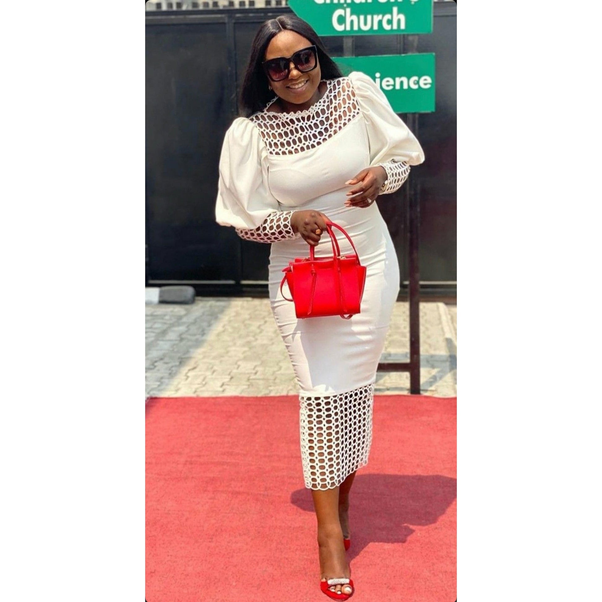 Mesh Hollow Out Long Lantern Sleeves Dress. Get ready to turn heads with this stunning dress. It's carefully designed and crafted using high-quality materials and the latest trends in fashion. With its delicate mesh and intricate hollow-out details, this dress stands out from the rest. And let's not forget the elegant long lantern sleeves that add a touch of sophistication. A must-have for fashion-forward individuals looking to make a statement at any event. Order yours today and be the envy of everyone.