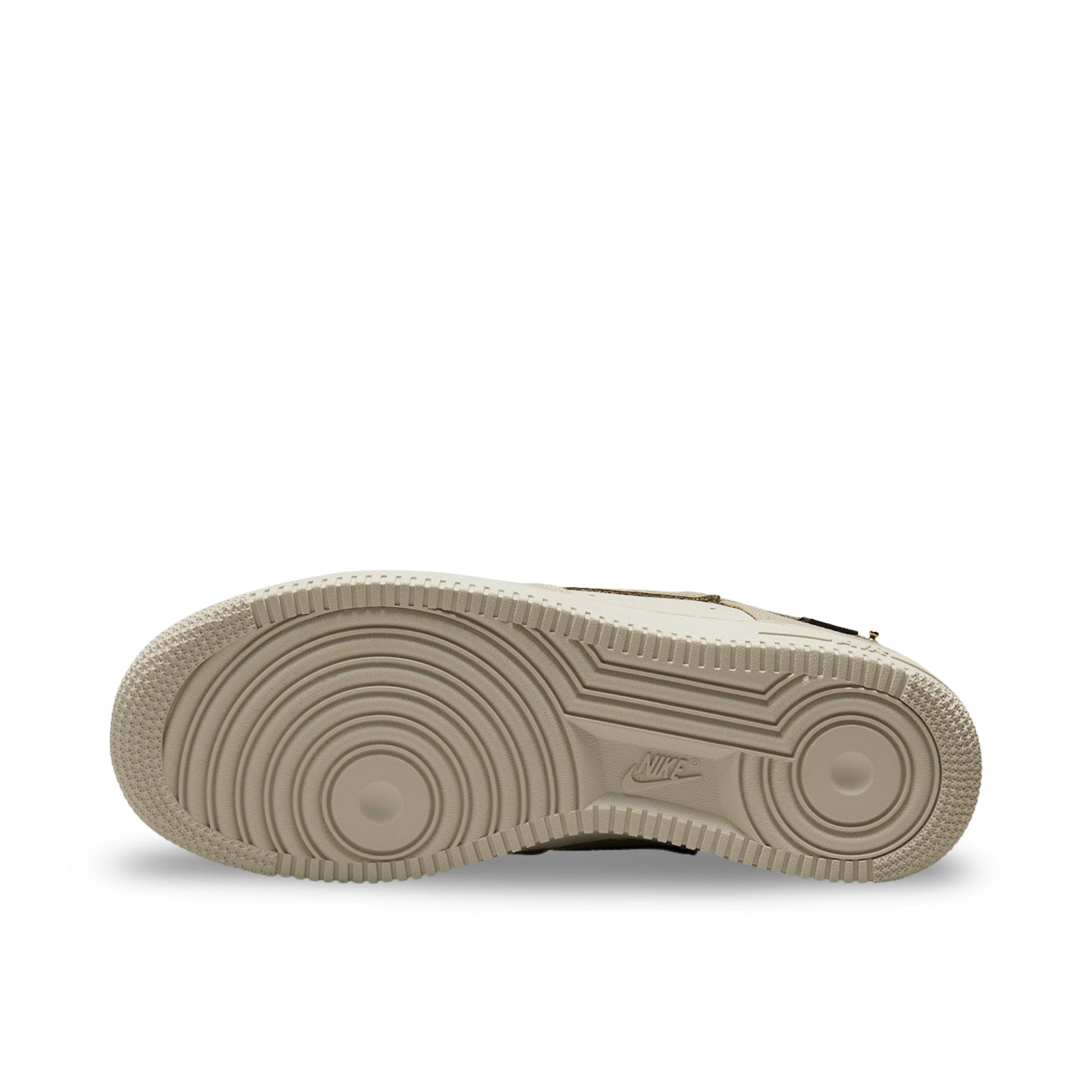 Dressed in tan, Cream, and Metallic Gold, this low-top Air Force 1 features a patchwork-style build on the upper comprising different materials, including mesh, leather, and ripstop. The focal point of this sneaker is the Metallic Gold detailing on the lace dubrae, tongue, and the branded bling hanging on the heel. Other details include split Swooshes on the quarter panels, miniature Swooshes embroidered on the lateral toe, toebox perforations, branded tags under the Swooshes on the quarter panels, and more Nike branding on the black heel tab. A tan "Air Force One" rubber sole unit completes the design.