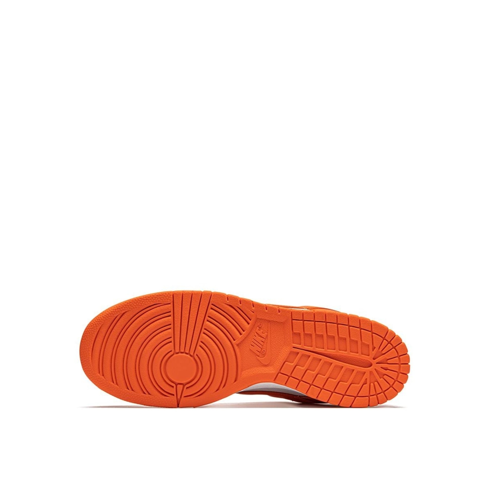 The Nike Dunk Low “Syracuse” is a special March 2020 release that draws inspiration from the beloved “Be True to Your School Pack” from 1985. The bold colourway mirrors the team uniform colours of the Syracuse Orange Men’s and Women’s basketball squads, and was worn on court by the teams in the mid-80s. The “Syracuse” Dunk released alongside a range of makeups for some of the top collegiate teams in the nation at the time. The modern version features buttery orange leather overlays that are contrasted by a white leather base that is visible on the mid-panel, toe, and heel. Orange Swooshes cover the mid-panels and white embroidered Nike branding appears on the heel. Release date: March 14, 2020.