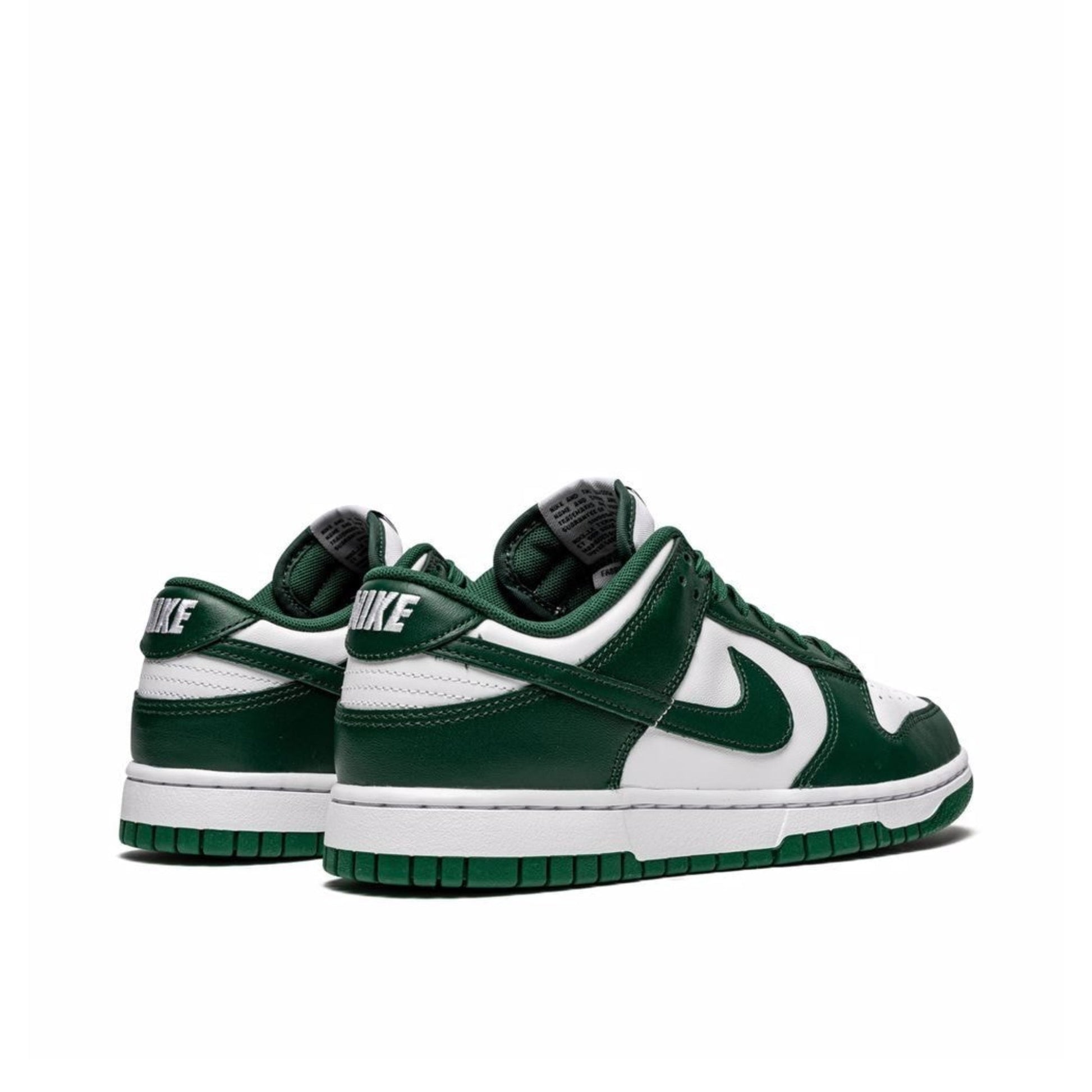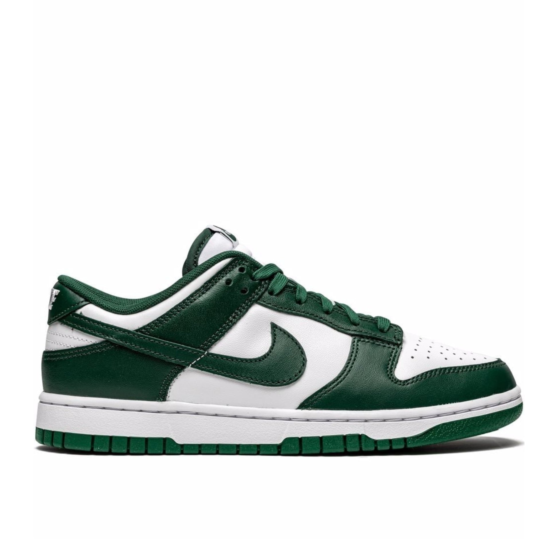 The Nike Dunk Low ‘Spartan Green’ delivers a low-top version of the Spartan Green Dunk from 2020. Like its predecessor, the shoe features a two-tone all-leather upper rendered in classic ‘Be True to Your School’ colour blocking. A stark white finish is contrasted by a dark green Swoosh and matching overlays at the toe and heel. Standard Nike branding hits decorate the heel and nylon tongue. The low-top is mounted on a durable rubber outsole, complete with a traction pattern originally developed for the hardwood.
