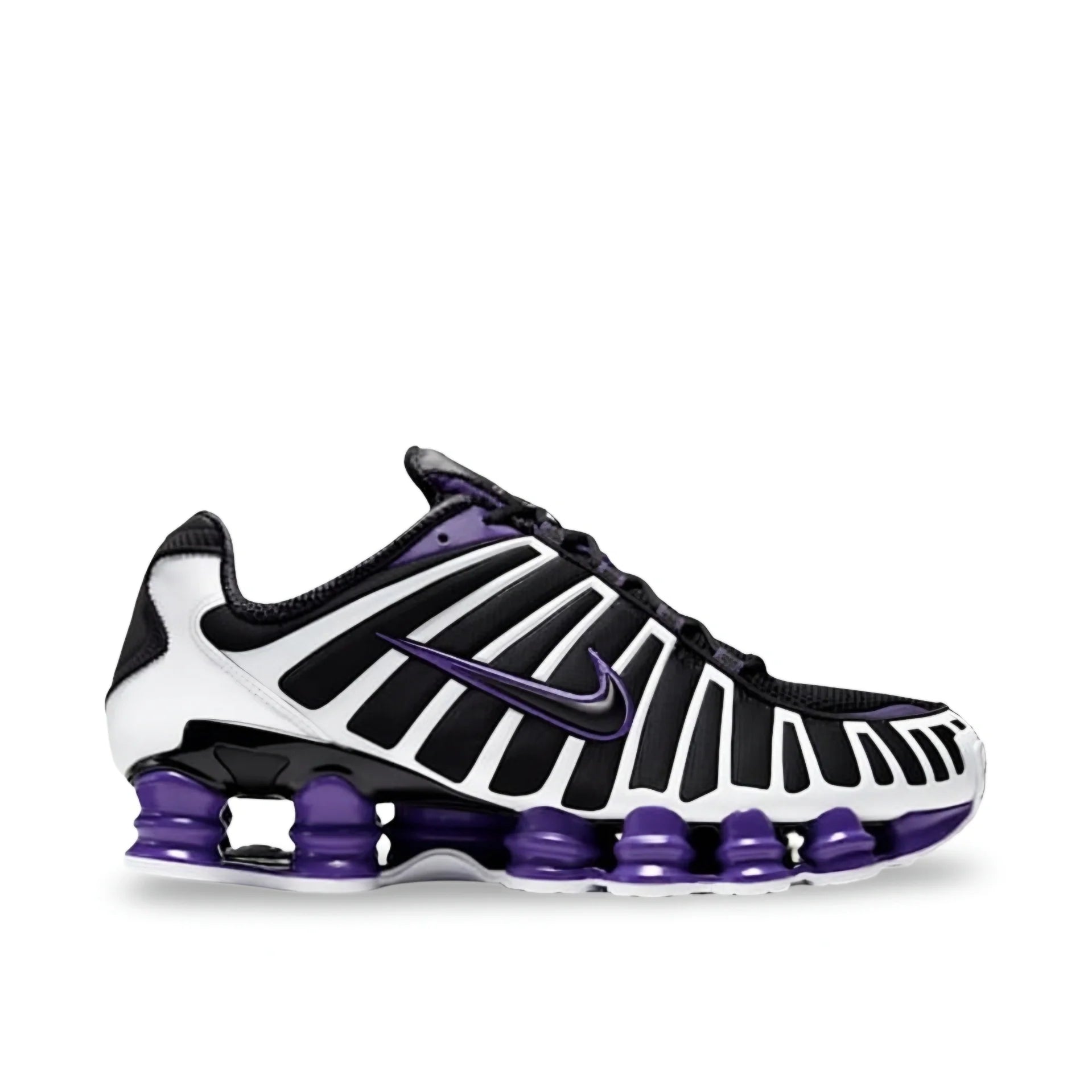 Unleash your energy with the Nike Shox TL “Black Court Purple”, a bold unisex silhouette that blends futuristic design with athletic heritage. Reimagined for today’s street culture, this model features a breathable black mesh upper, layered TPU exoskeleton cage, and signature Court Purple Shox columns that absorb impact while returning energy with every step.