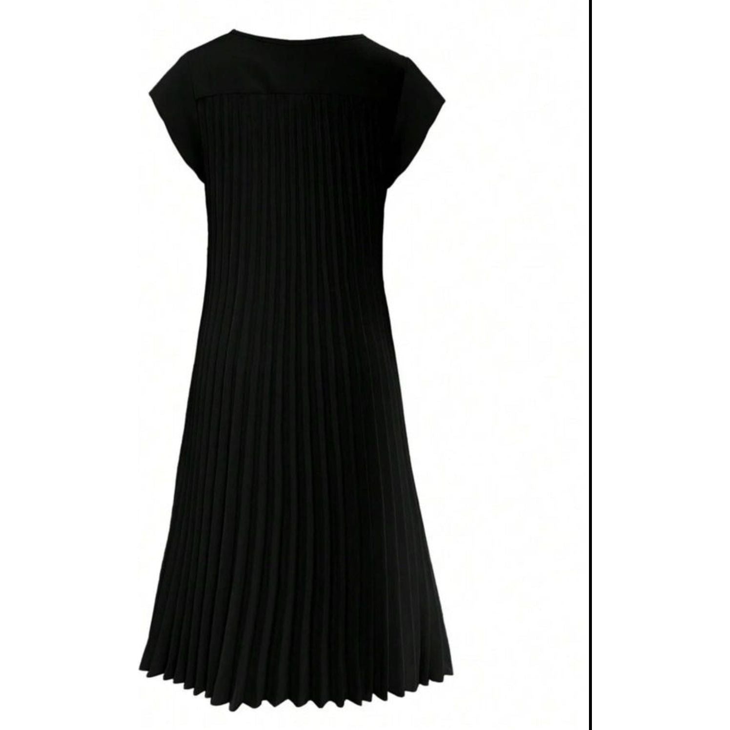 This dress is designed to be both elegant and comfortable, making it the perfect addition to any plus size wardrobe. The solid color and pleated design add a classic touch, while the O-neck and sleeveless cut make it perfect for any occasion.
