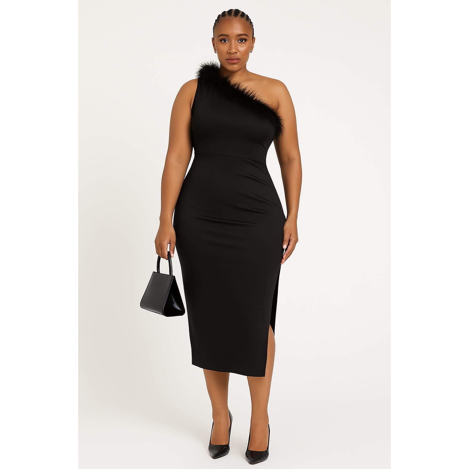 Discover a new level of style and sophistication with our One Arm Fluffy Bodycon Dress. Made with a fluffy, fashionable design, this dress exudes elegance and will elevate any outfit. The bodycon fit hugs your curves for a flattering silhouette, making you feel confident and stylish. Perfect for any occasion, this dress is a must-have in your wardrobe.