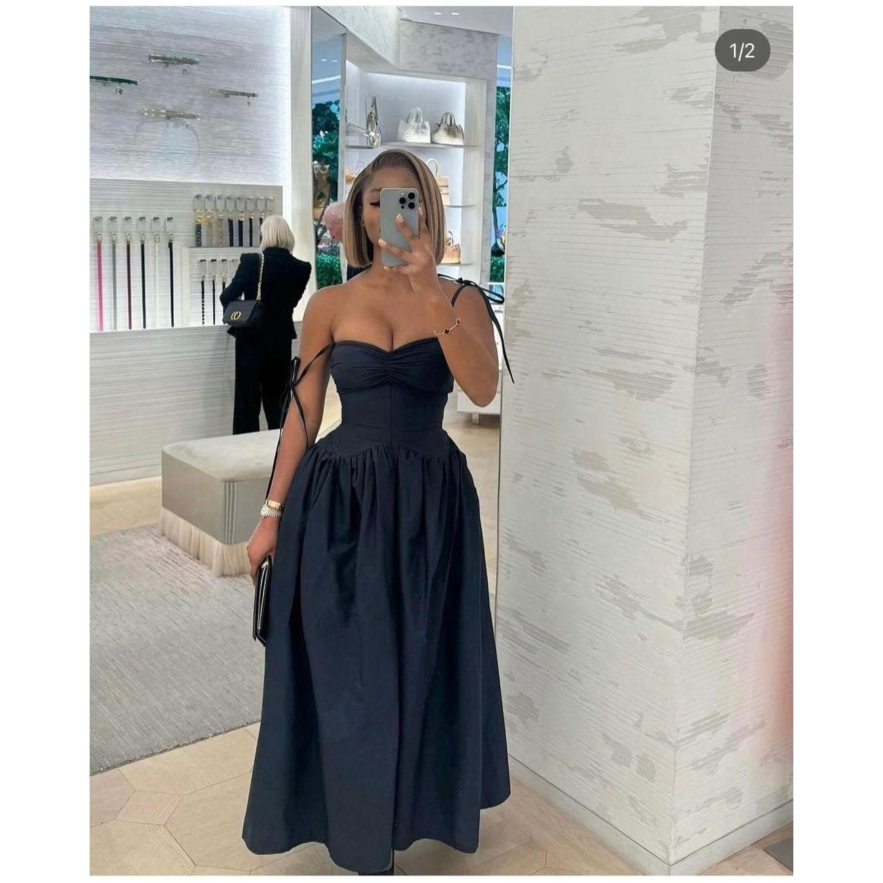 Spaghetti strap Lace Up Midi Dress.