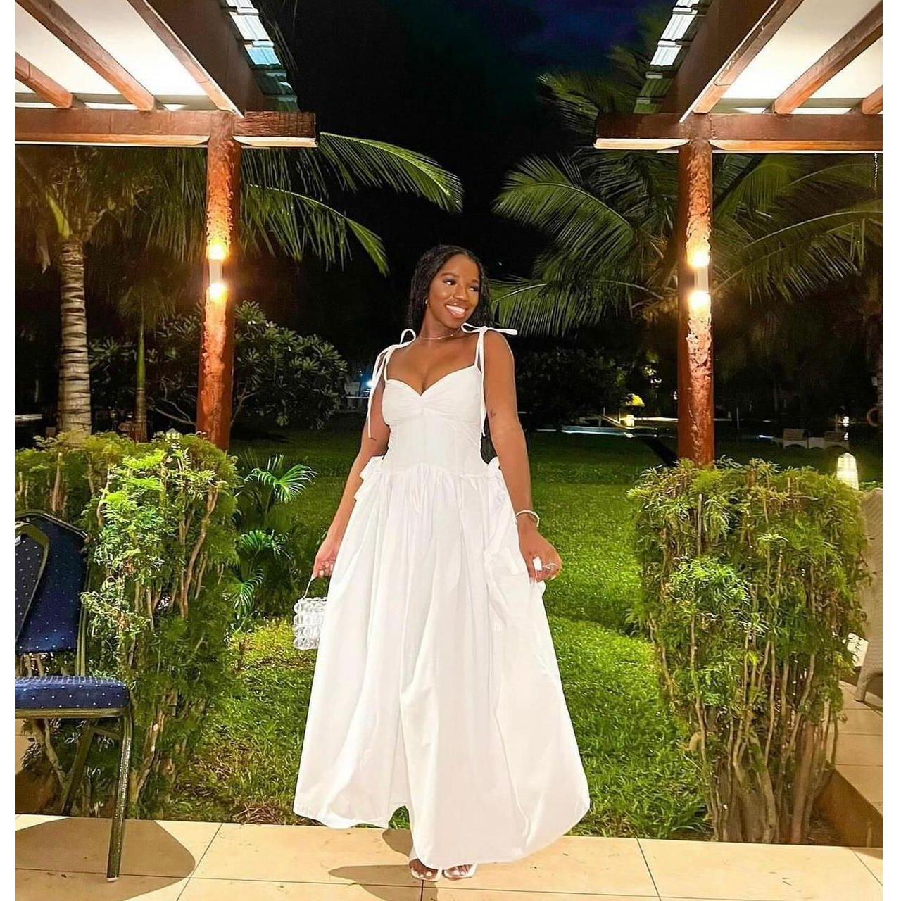 This dress is made with high-quality lace that is both soft and breathable, providing maximum comfort throughout the day. Its spaghetti straps offer a delicate touch, while the lace-up feature adds a modern and stylish element.