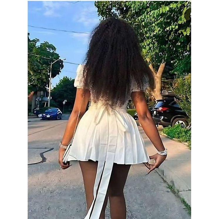 Sexy Deep V-Neck Pleated Mini Dress.