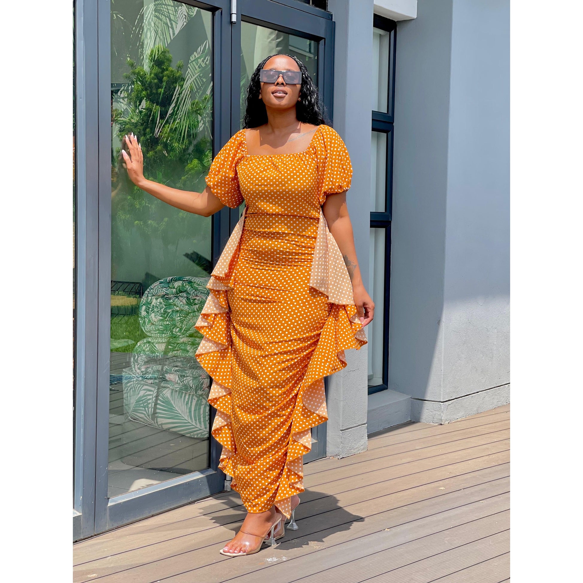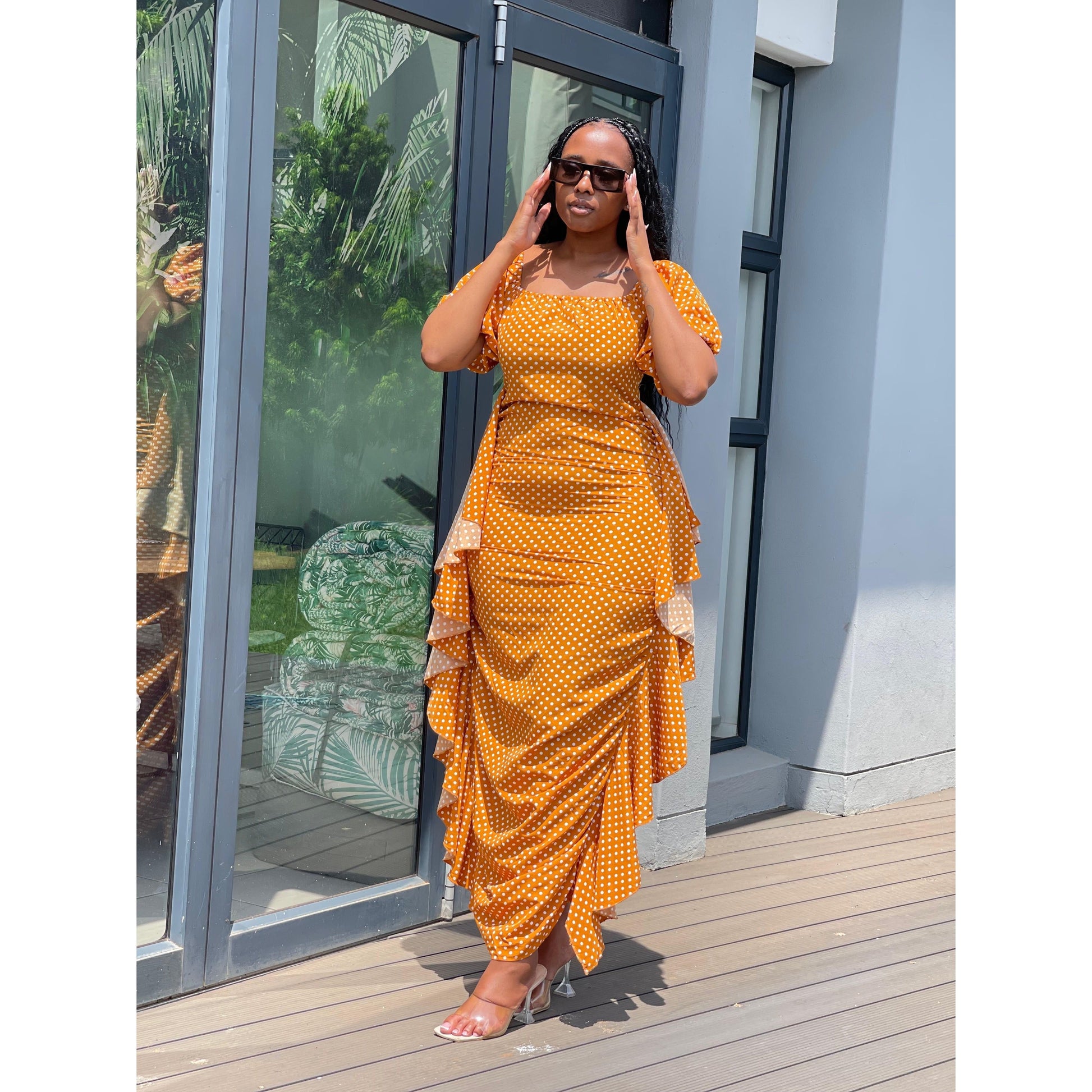 This fashionable dress features a sheer mesh design and off-shoulder neckline, along with short sleeves and a chic ruffle detail. Its airy, lightweight fabric allows for comfortable wear, making it perfect for any occasion. With its trendy style and versatility, you'll be sure to turn heads and feel confident in this stunning dress.
