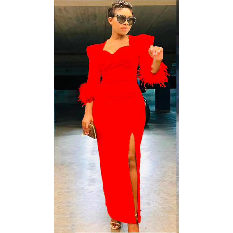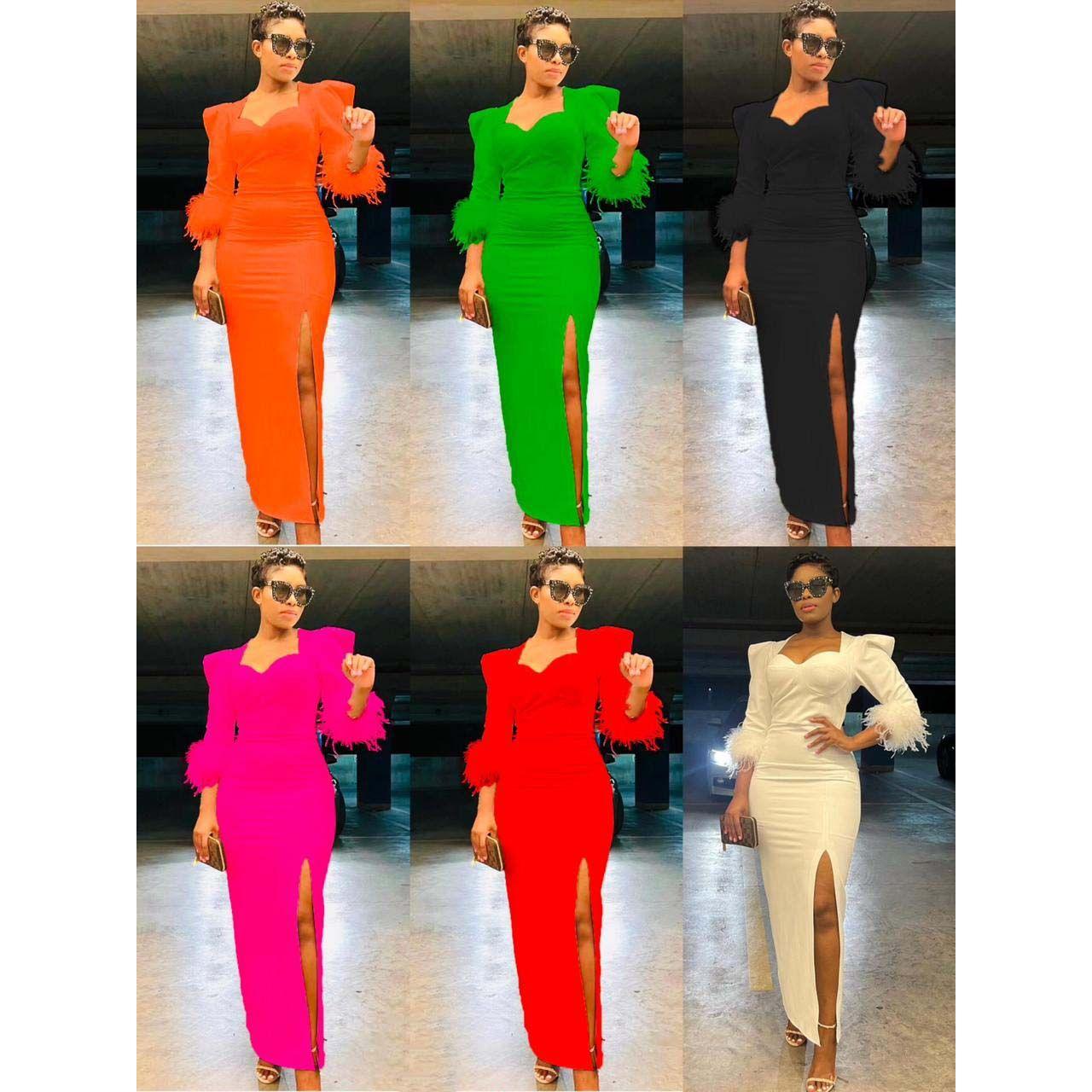 This High Waisted Slit Fluffy Dress features a modern, stylish silhouette, complete with a side slit to keep it classy. Perfect for a night out or special event.