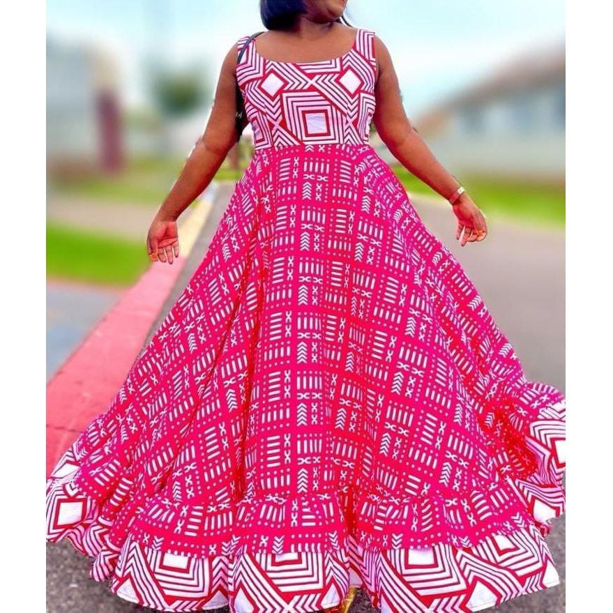 Printed Sleeveless bottom wide dress. A versatile dress that is ideal for any occasion, making it a must-have in your wardrobe.
