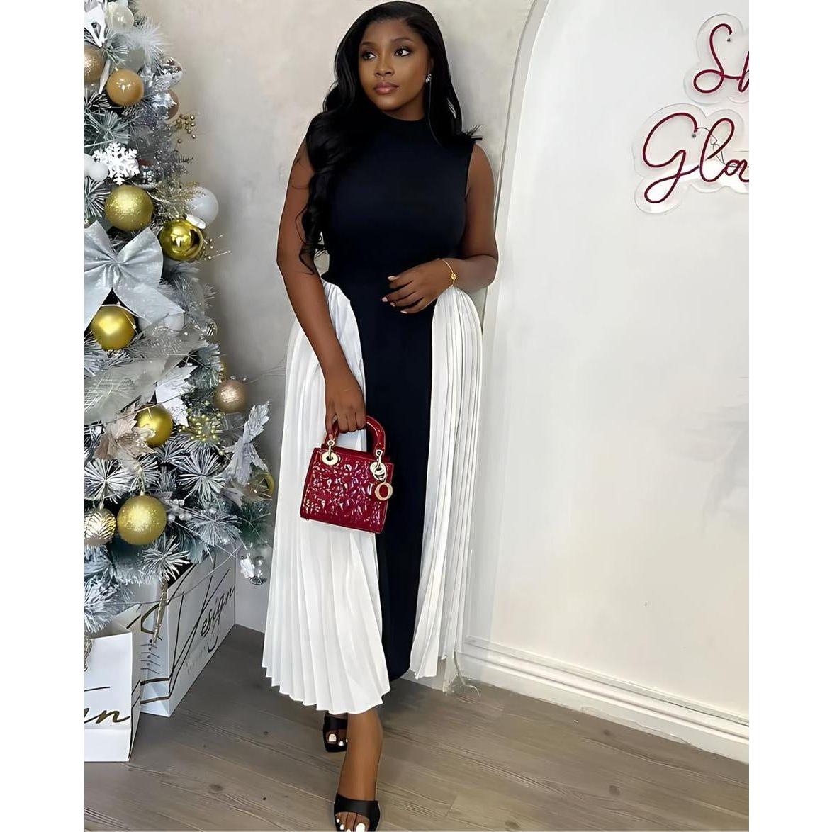 Effortlessly stylish and flattering, this dress offers a comfortable and versatile wardrobe staple. With its sleeveless design, round neckline, and elegant patchwork pattern, this long dress is a perfect blend of fashion and function. Made with high-quality materials to ensure long-lasting wear, this dress is perfect for any occasion and will be sure to turn heads.
