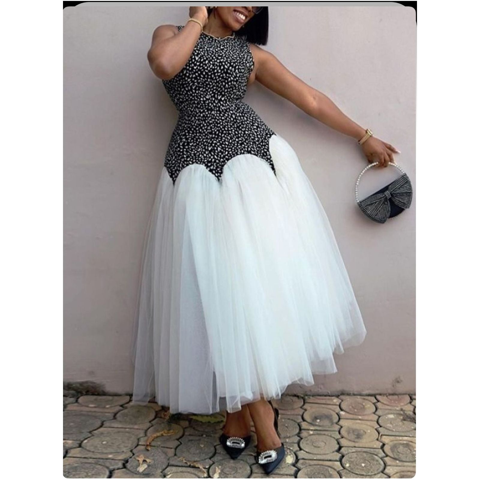 Sleeveless Tule Dress The sleeveless tulle dress is made from high-quality, lightweight fabric that will keep you cool and comfortable all day long. With its breathable material and delicate design, this dress is perfect for any special occasion.