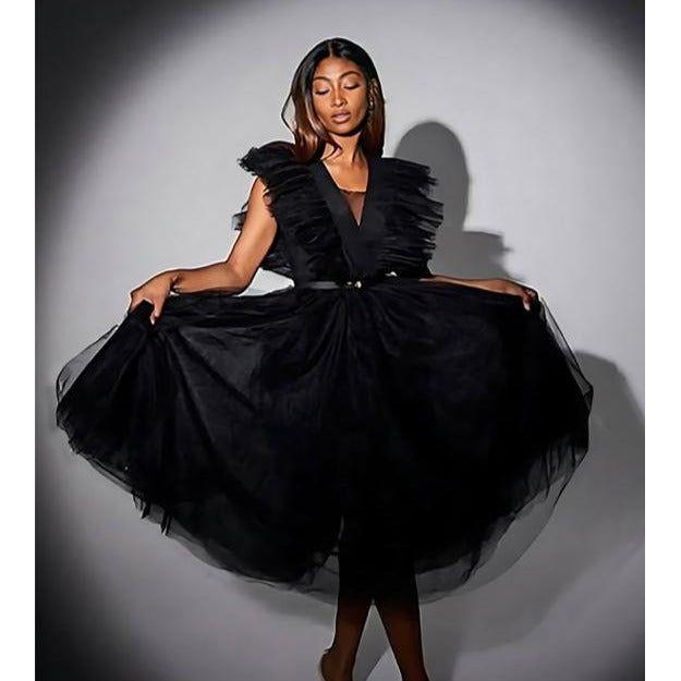 Expertly crafted with high-quality lace, this sleeveless dress exudes modern elegance and fashionable style. A must-have for any wardrobe, this V-neck dress is the perfect blend of quality and sophistication. Elevate your look with this stylish and timeless piece.