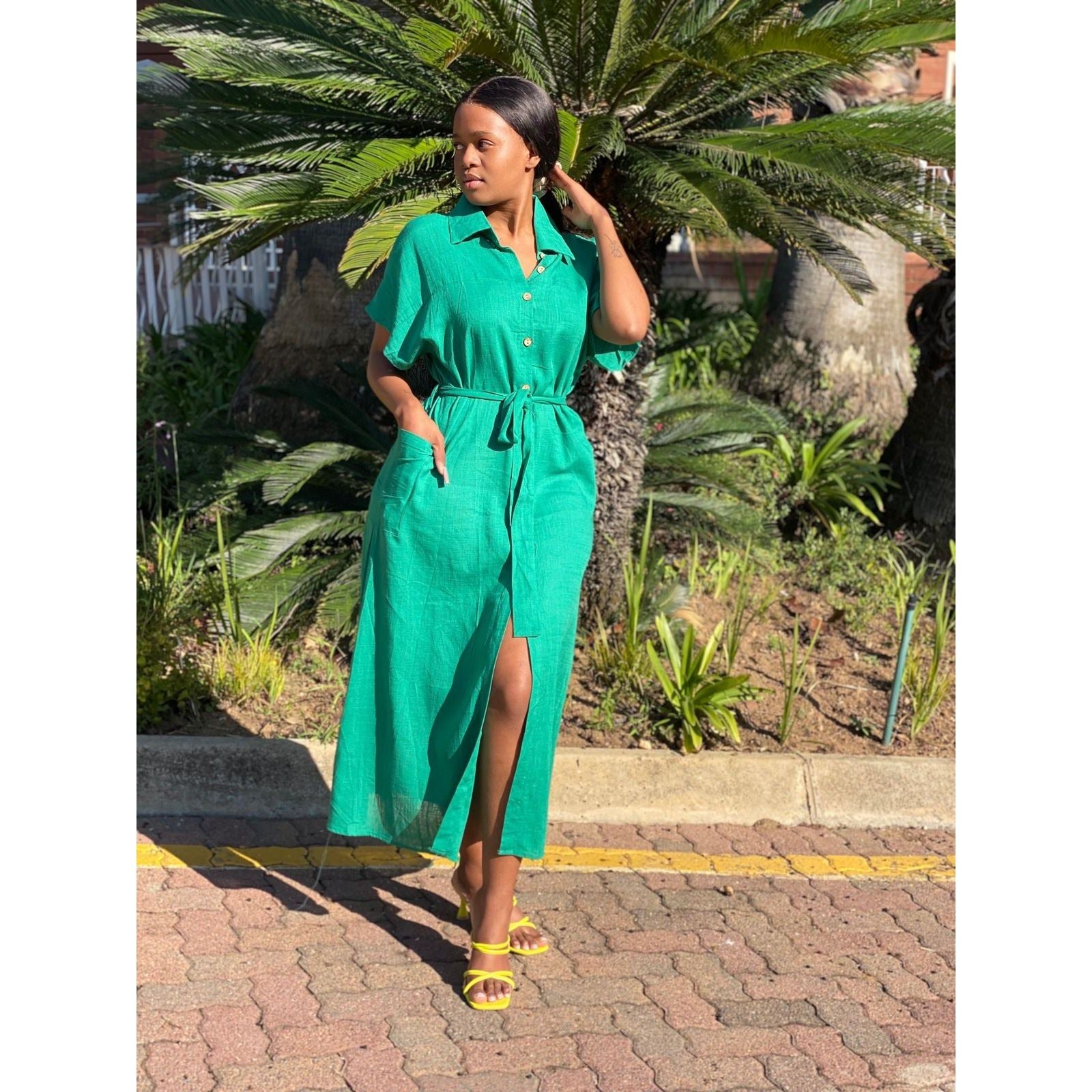 Look modern and feminine in this Solid Colour Single Breasted Sexy Slit Mid Length Dress. This Polyester-blend dress features rich solid color, a single breasted style, and a mid-length style. Perfect for a chic, sophisticated look.