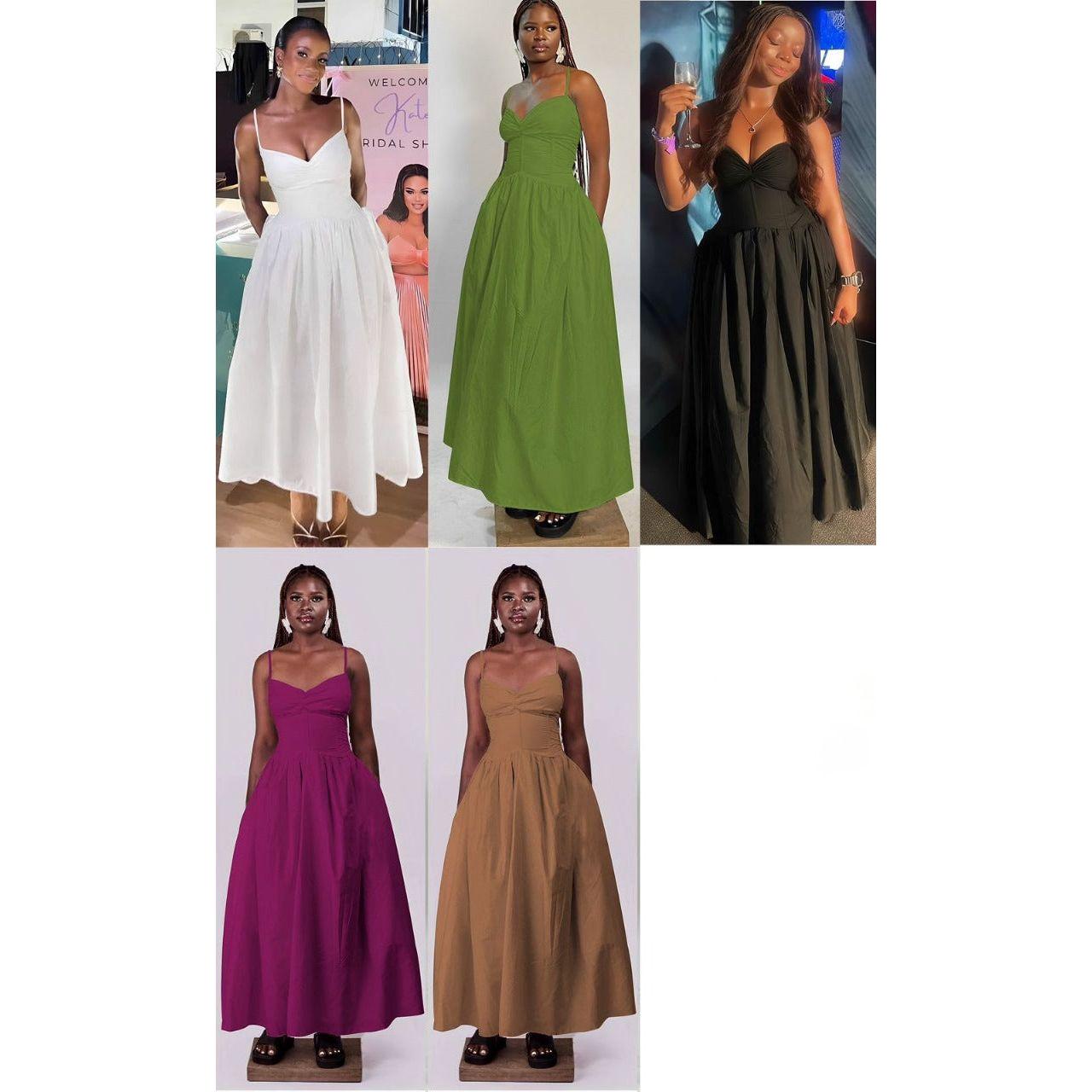 Spaghetti strap Lace Up Pleated Midi Dress.