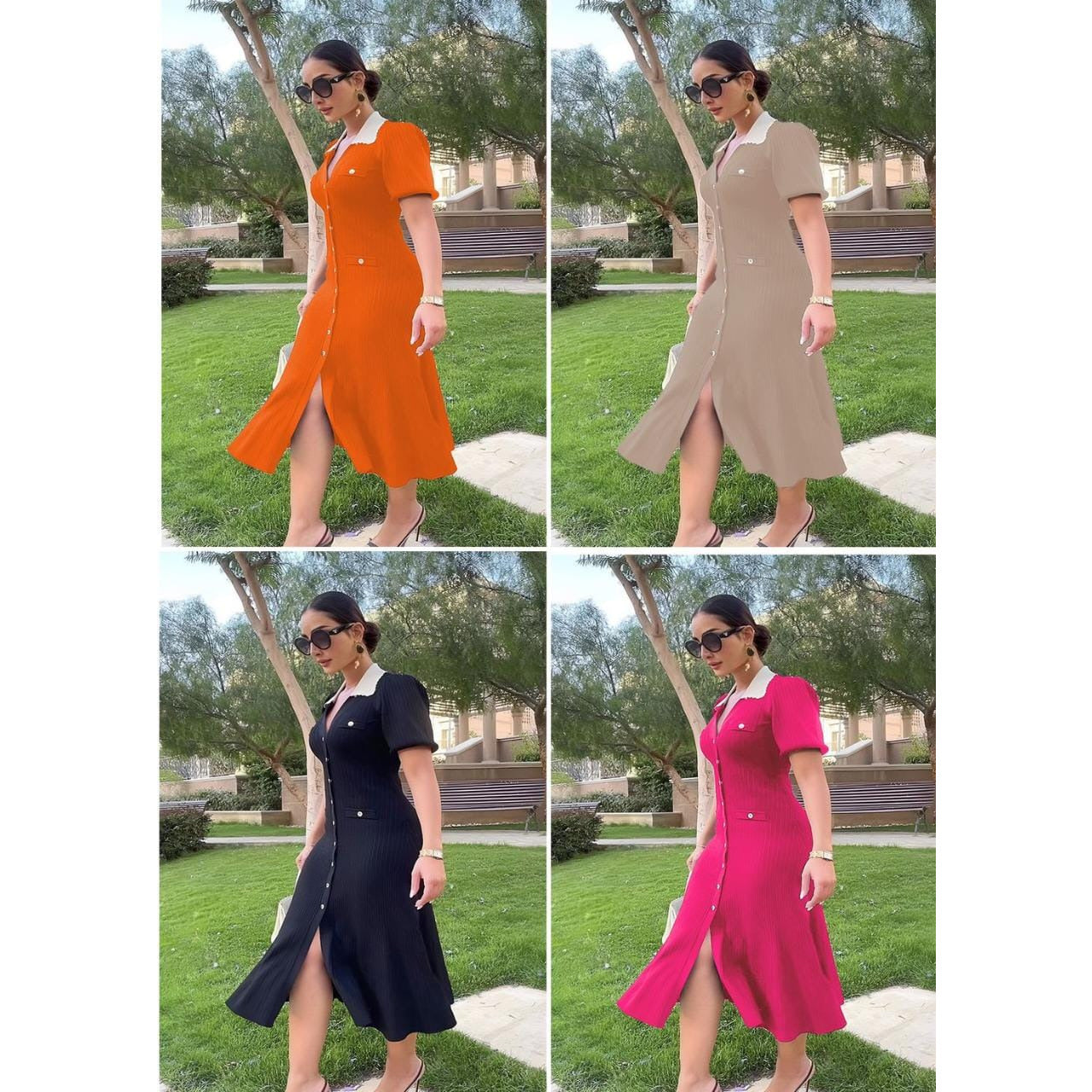 Look fashionable, stylish and classy in this Button Detailed Knitted Dress. It features a turn down collar and V-neck that offers a flattering fit. With its timeless design, it's the perfect go-to piece for any occasion.