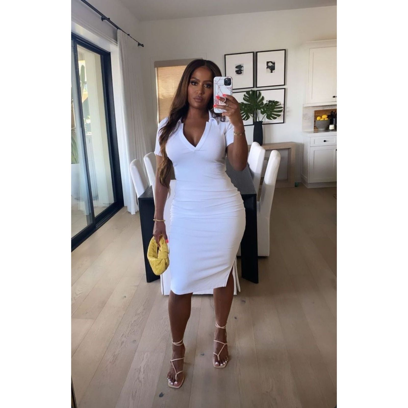 V-Neck Golfer Midi Dress Featuring a flattering v-neck design and a comfortable midi length, this dress is a versatile addition to any wardrobe. Made from high-quality materials, it provides both style and comfort for any occasion. Whether you're dressing up for a special event or looking for a chic everyday outfit, this dress has got you covered.