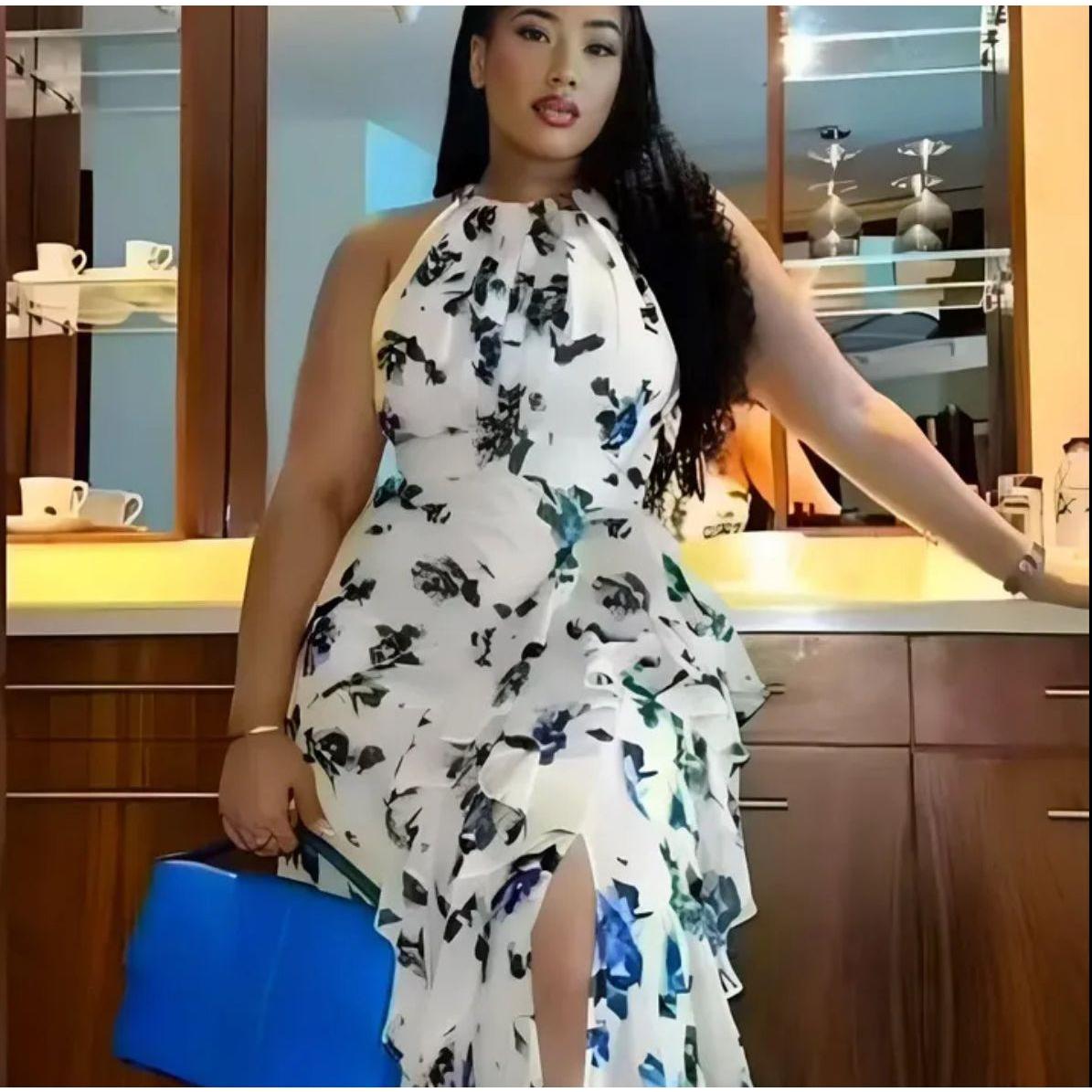 Made with premium quality fabric and designed for comfort and style, this Halter Ruffle Maxi Dress is the perfect addition to your wardrobe. It boasts a flattering halter neckline and stunning ruffles that will elevate your look for any occasion.